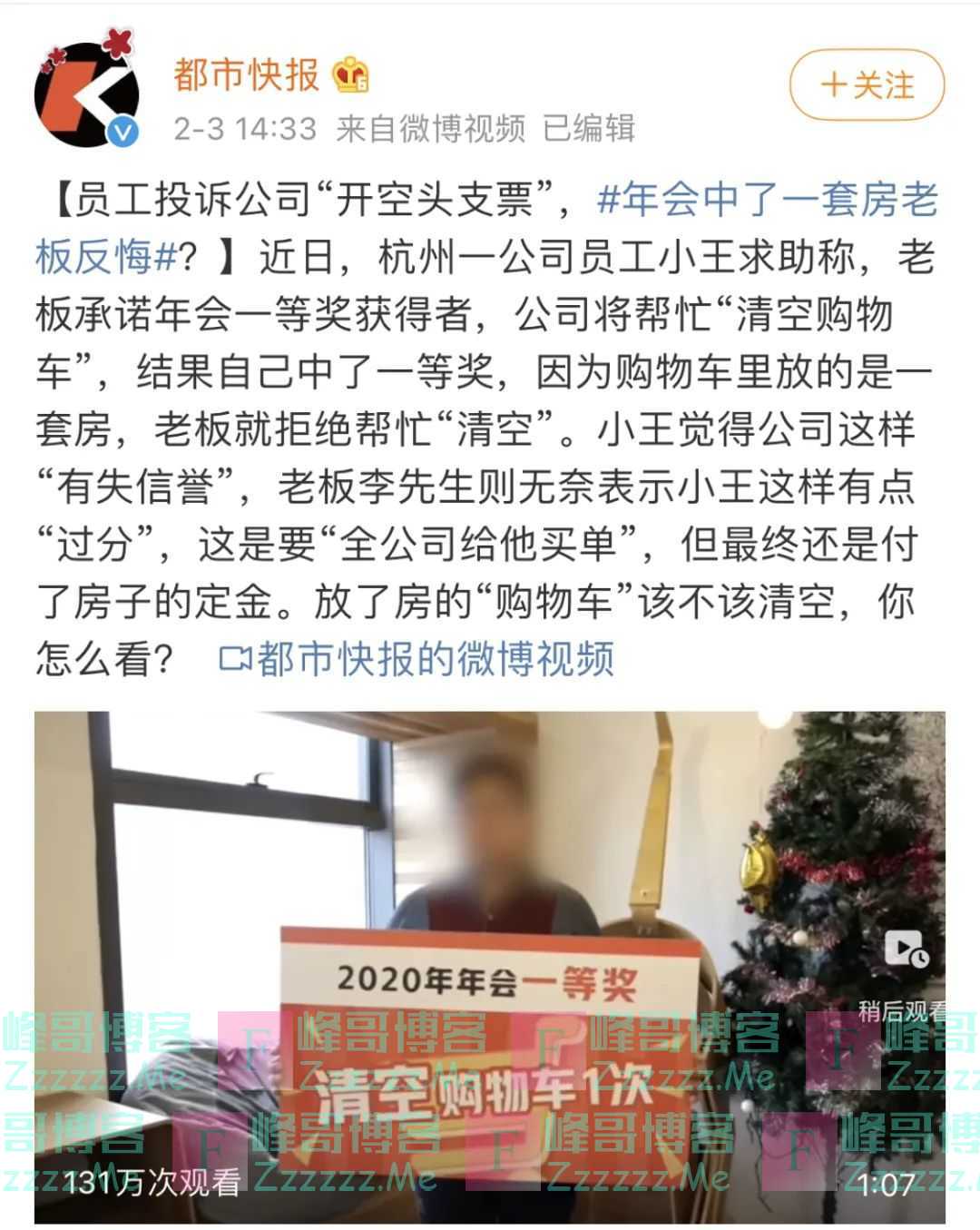 年会一等奖是清空购物车,中奖男购物车里放了一套房,律师解读》发布于2021-2-13