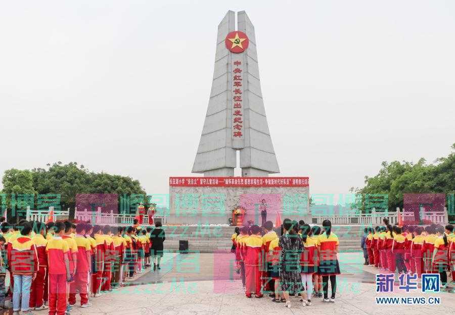 长征源小学师生在江西于都中央红军长征出发纪念碑前参加清明祭扫活动(2018年4月4日摄)。新华社发(长征源小学供图)