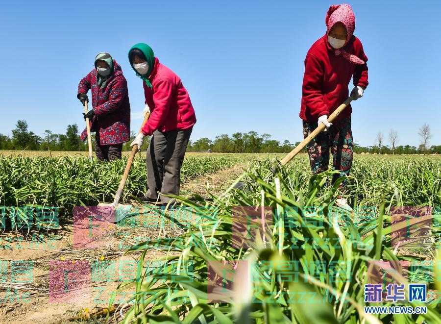 2020年5月11日,农民在山西省大同市云州区西坪镇唐家堡村边的黄花菜地里除草。新华社发(柴婷 摄)