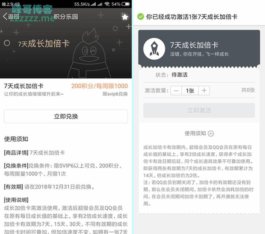 【每月一次】QQ超级会员200积分兑换7天成长值翻倍卡》发布于2018-12-2