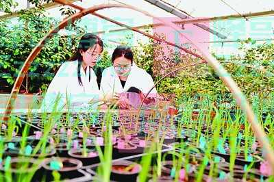 上海植物园科研人员程琳(左)、张蕾蕾在温室观察记录花菖蒲新品种生长情况。新华社发在1999年8月召开的全国技术创新大会上,江泽民同志在大会上发表重要讲话,会后发布《关于加强技术创新,发展高科技,实现产业化的决定》。本次大会的亮点在于明确强调:加强技术创新、加速科技成果向现实生产力转化。