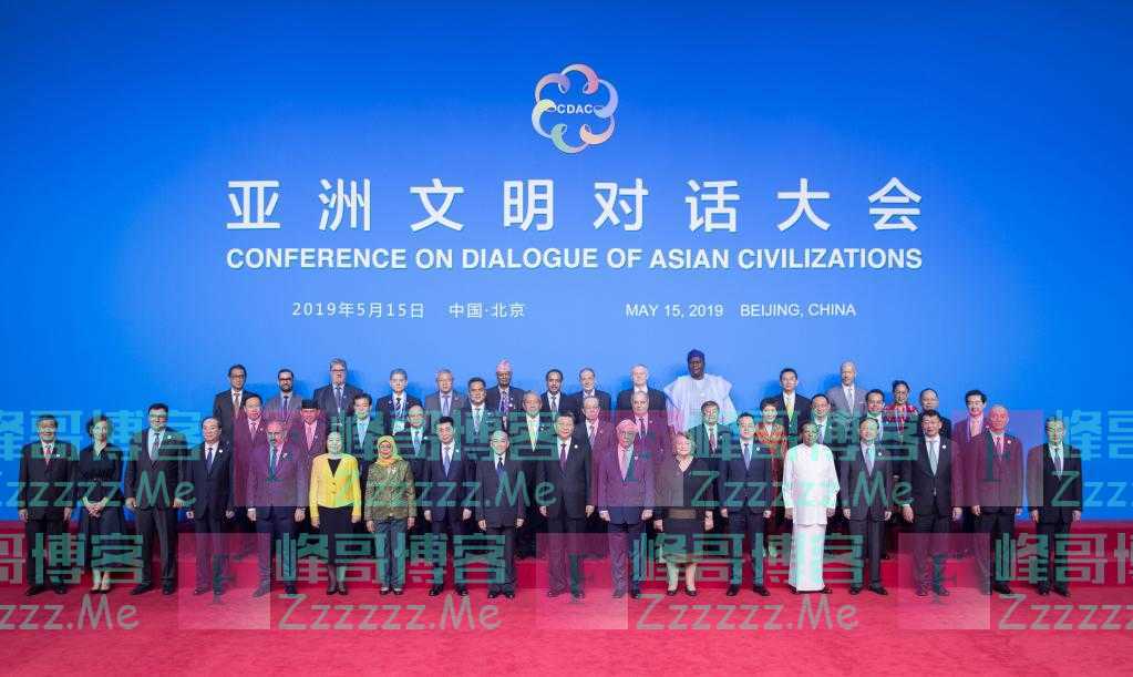 2019年5月15日,习近平出席亚洲文明对话大会开幕式并发表主旨演讲。开幕式前,中外领导人同出席开幕式的重要嘉宾代表合影留念。