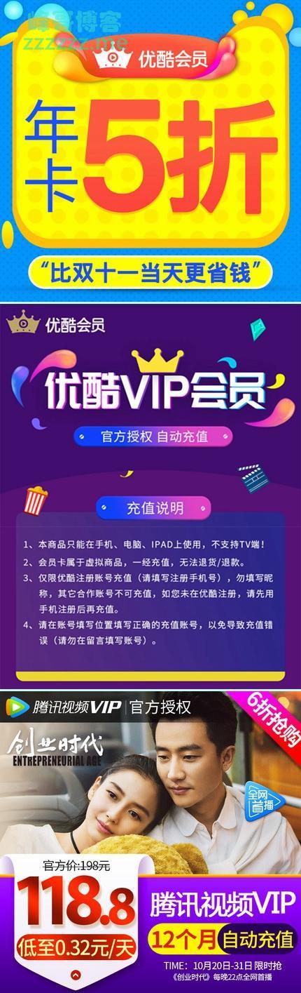 淘宝优酷腾讯视频年卡限时半价秒充值到账!》发布于2018-10-23