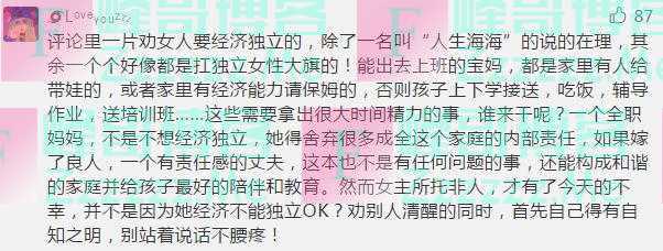有一些网友认为该女子不要继续做全职太太