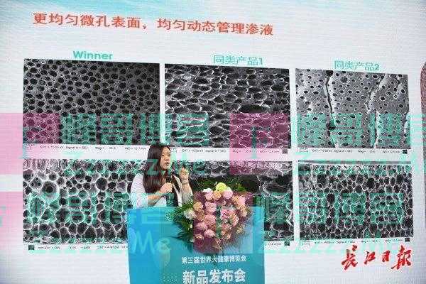 2021年4月9日,第三届世界大健康博览会新品发布会暨成果转化论坛现场,稳健医疗发布新品——泡沫敷料。 记者苗剑 胡冬冬 摄
