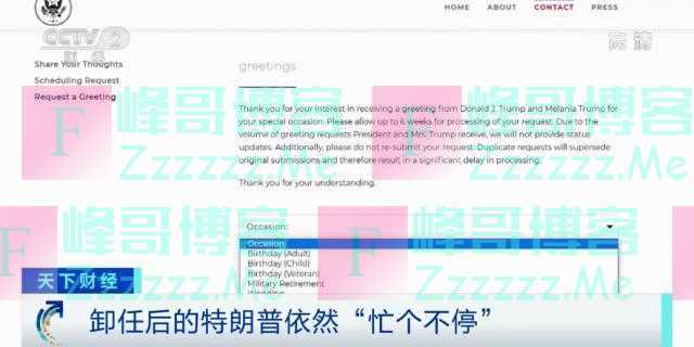 被各大社交网站封禁的特朗普却建立起了自己的个人网站,网友们发现,在这个名为第45任总统官网的网站上,还有一个隐藏功能。点击“联系我们”的选项,选择“请求祝福”,就可以邀请特朗普和前第一夫人梅拉尼娅对各种红白喜事、光荣退役、毕业典礼或孩子出生等场合献上祝福或问候。