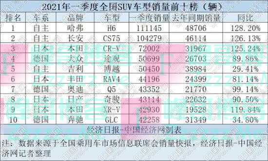 一季度SUV:H6、CS75稳居头部 德系高档“量价齐升”》发布于2021-4-15
