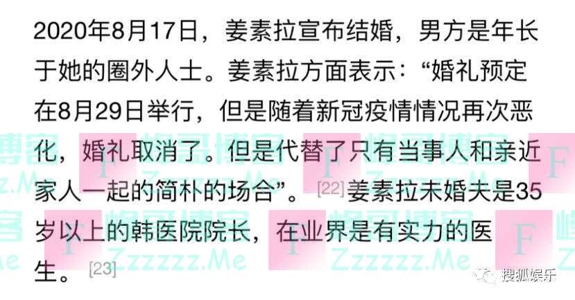 去年,姜素拉突然宣布了与圈外男士的婚讯,老公是一位事业有成的医生,比她大一些。