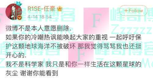 14日18时54分,任豪发文强调“微博不是本人意愿删除”。