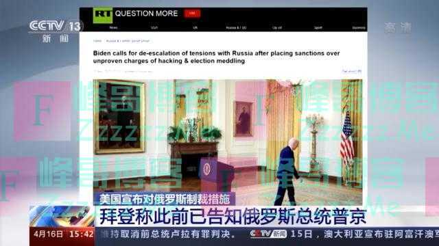 对此,今日俄罗斯电视台网站15日报道指出,拜登在以毫无证据的借口为理由下令制裁俄罗斯后,竟然还希望俄罗斯不要作出回应措施,呼吁缓和两国关系。