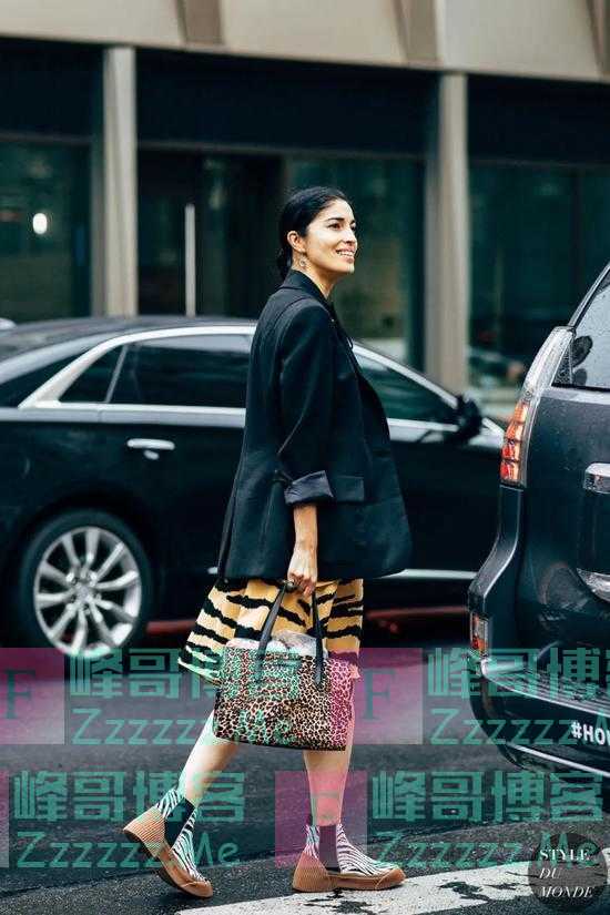 再看看她穿动物纹~没人敢像她这样,把虎纹、豹纹、斑马纹统统揽上身,但整体看来又和谐又高级,而且很有职业感,可太厉害了!