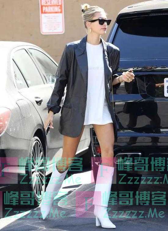 即便是宽松的T恤裙、卫衣裙,显腿长效果也是一流,难怪Hailey那么爱穿。(有这身材资本,编辑也天天穿!)