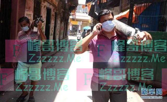 4月23日,医护人员在印度加尔各答背着氧气瓶行走。