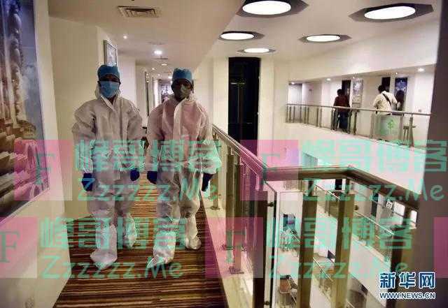 4月23日,医护人员在印度海德拉巴的一家被改造为新冠患者收治中心的酒店内工作。