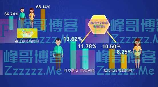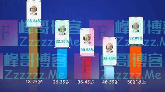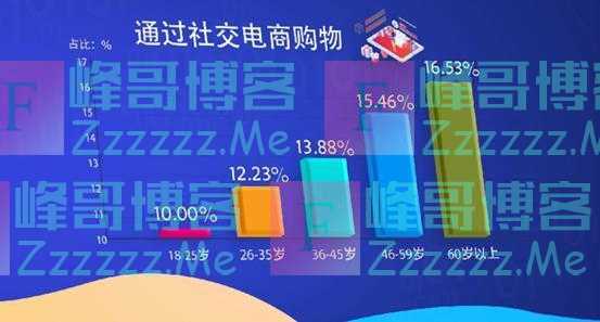 在传统社交电商购物的人群随年龄的增长,比例也有不同程度的增长。