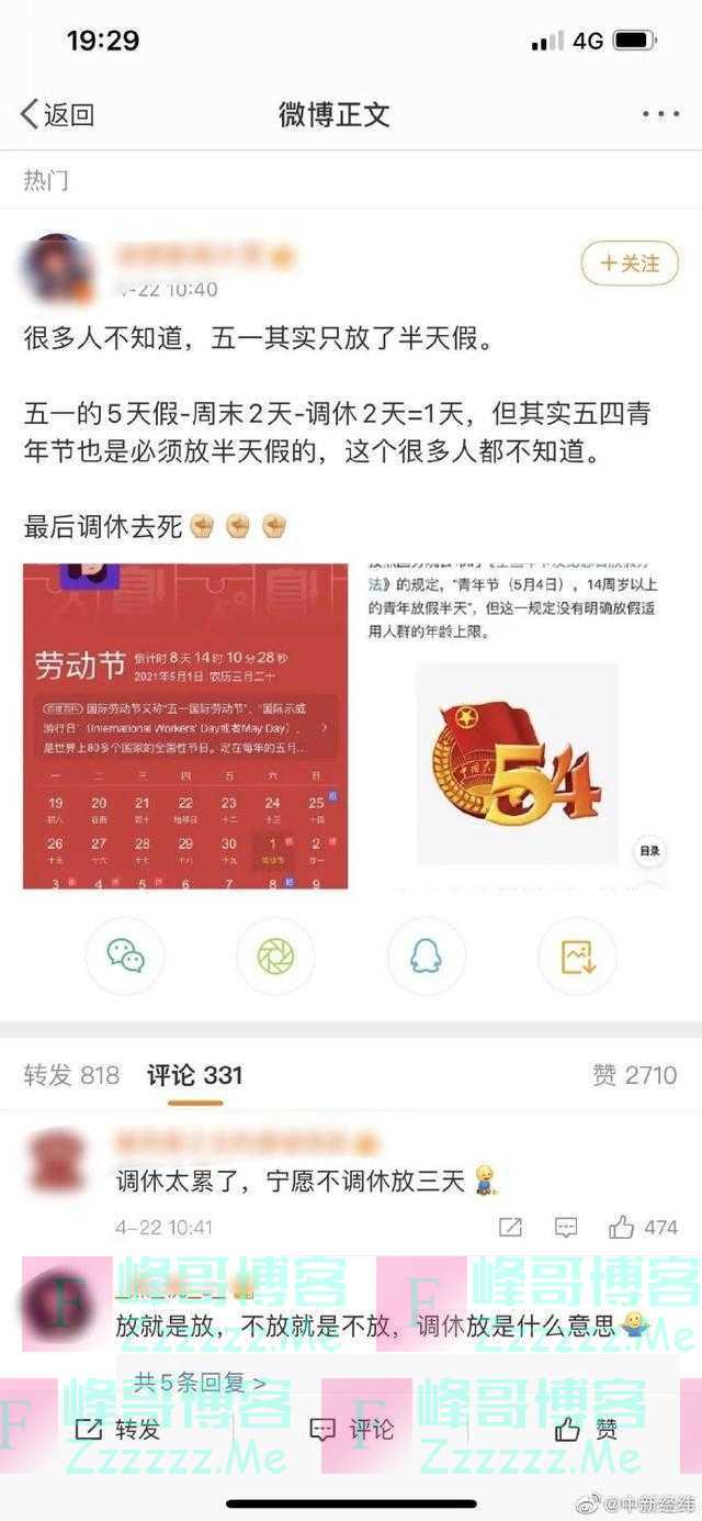 五一调休被怼上热搜 网友:实际只放了半天假》发布于2021-4-26