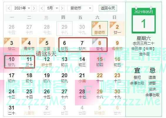 另外,工作满一年的小伙伴,若在五一小长假灵活“拼假”,可拥有11天的超长假期;此外,若选择在假期加班5天,获得的加班工资相当于平时工作11天!