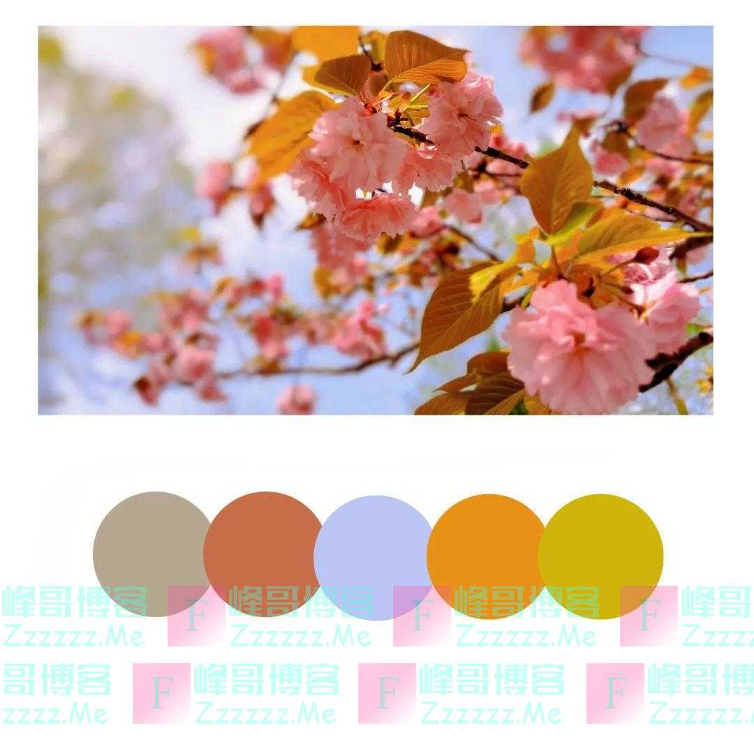 光橙色点缀下的樱花粉格外显眼