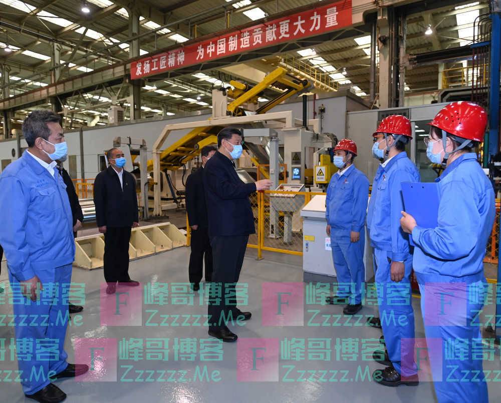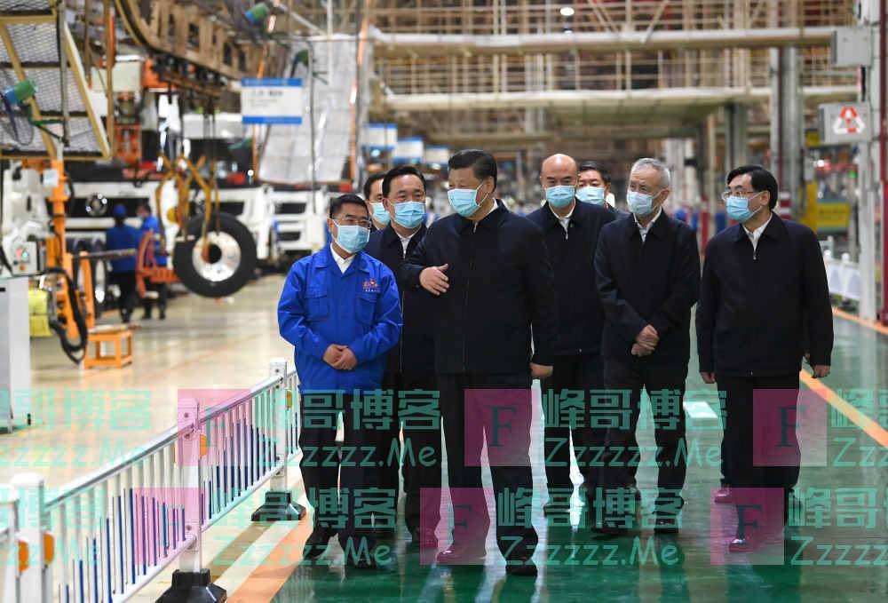 ↑2020年4月22日,习近平在陕西汽车控股集团有限公司总装车间察看生产线,了解产品研发、生产、销售和复工复产情况。
