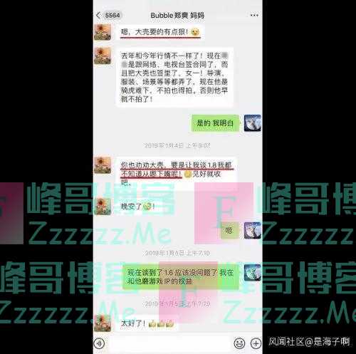 2019年1月4日,郑爽父亲认为,1.5亿的片酬已然不错,希望张恒给郑爽做工作:“因为1.8(亿)不是现在……就是以前,1.8(亿)也很吓人了,也很多了。这个形势,我觉得弄得……有点风险太大。”