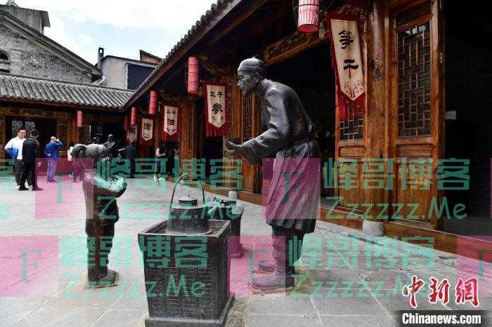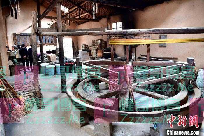 本文转自【中国新闻网】; 图为游客在富溪镇参观有近两百年历史的油茶作坊。 张斌 摄