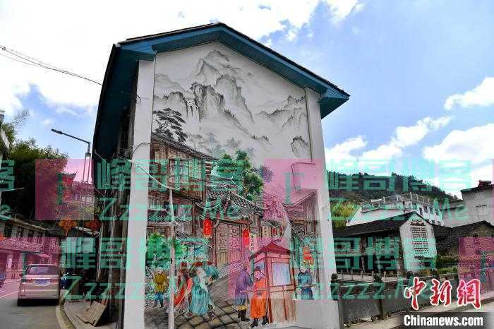 本文转自【中国新闻网】; 图为墙绘作品再现古镇繁华景观。 张斌 摄
