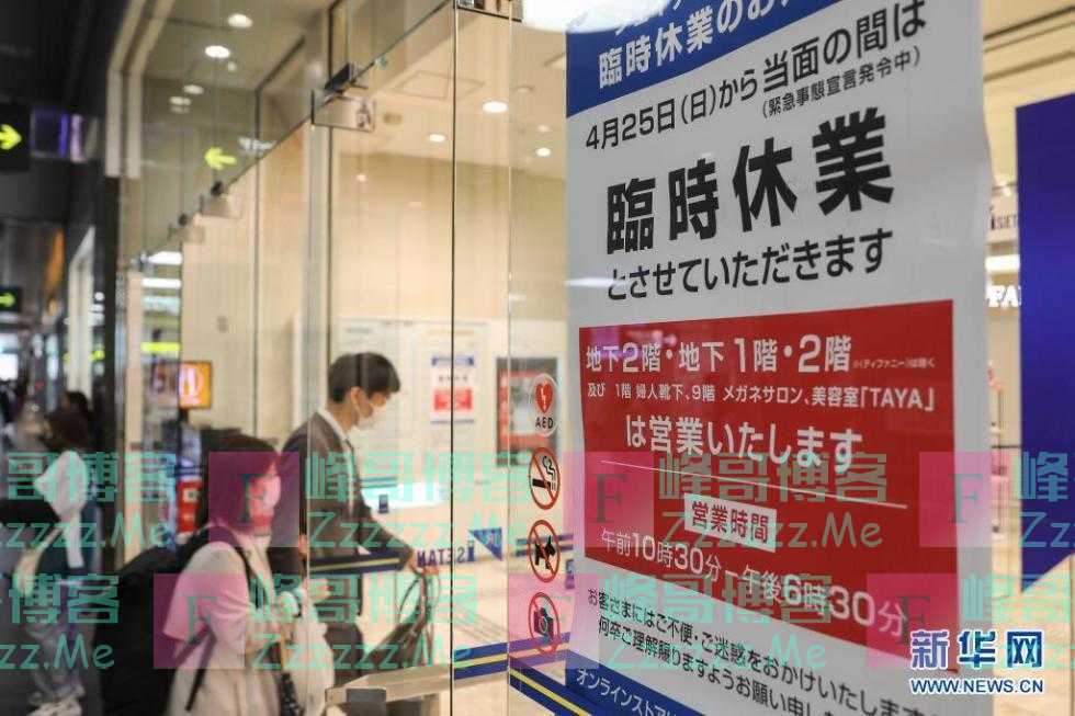 4月29日,在日本京都,一家百货店门前贴出告示,告知顾客大部分店铺暂停营业,仍营业的店铺缩短营业时间。 当日是日本“黄金周”长假首日,东京都、大阪府、京都府和兵库县4地受25日启动的紧急状态影响,各景点和交通枢纽人流量相较往年“黄金周”有所减少。 新华社记者 杜潇逸 摄