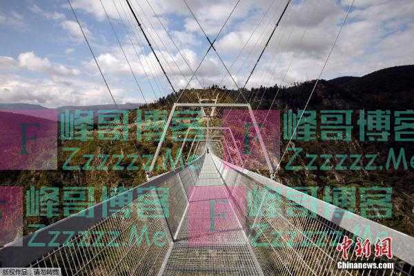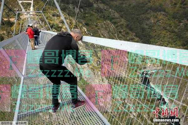 当地时间4月29日,葡萄牙阿鲁卡,世界最长人行悬索桥“516 Arouca”向当地居民开放。据报道,这座桥位于帕瓦迪索斯·帕瓦,全长516米,桥面由金属构建打造,能直接看到透过桥面看到峡谷。图为游客在桥上打卡体验。