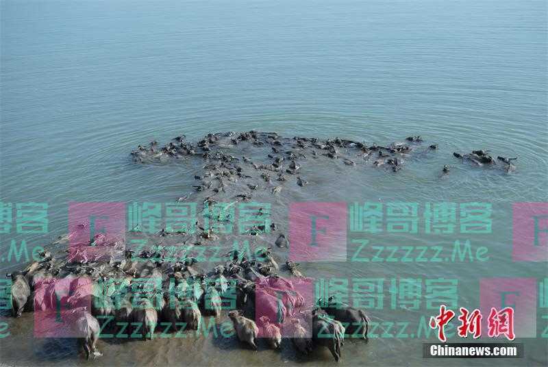 本文转自【中国新闻网】; 上百头水牛冲入嘉陵江。 郭安平 摄