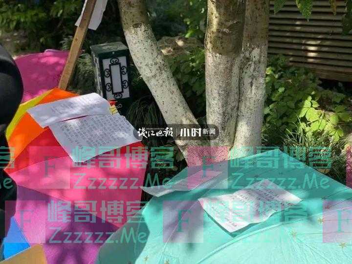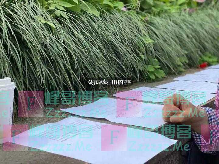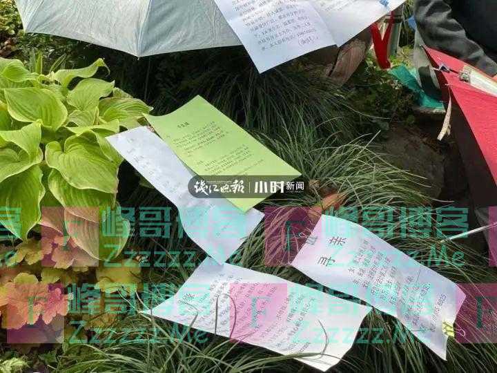 聚了不少人,一些写着各种信息的材料放在台阶上。