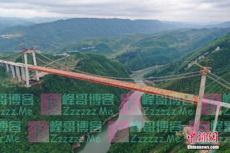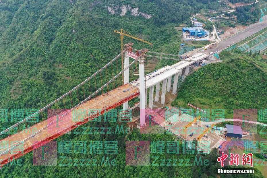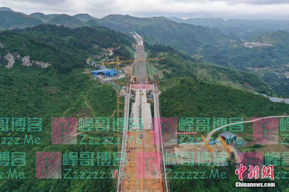 本文转自【中国新闻网】; 5月4日,建设中的阳宝山特大桥。由中交二公局第二工程有限公司承建的贵州贵(阳)黄(平)高速公路阳宝山特大桥位于贵州省贵定县境内。该大桥全长1112米,主跨650米,是一座六车道钢桁梁悬索桥。(无人机照片) 中新社记者 瞿宏伦 摄