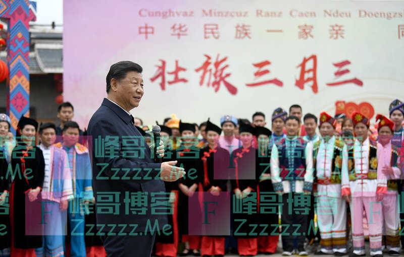 2021年4月27日,习近平总书记在南宁市广西民族博物馆外,同参加三月三“歌圩节”民族文化活动的各族群众亲切交流。