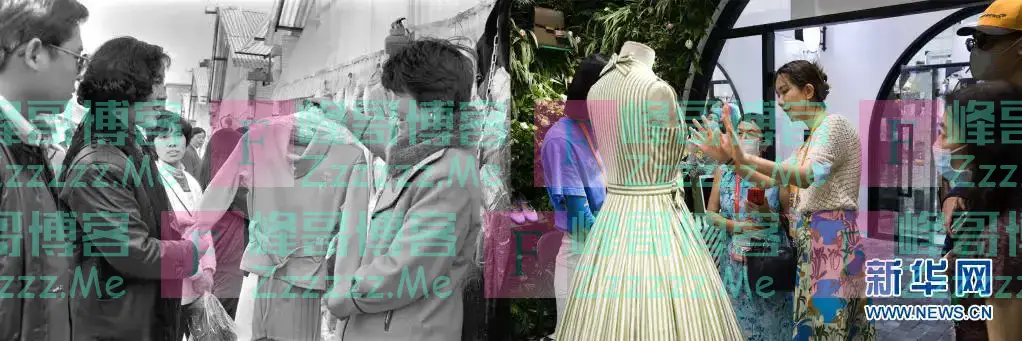 这是一张拼版照片:左图为1994年,在北京丰台区“京温工业品批发市场”,人们在选购时装(新华社记者谭进摄);右图为2021年5月8日,在海南举行的首届中国国际消费品博览会时尚生活展区法国馆,一件来自法国的时装吸引观展者的注意(新华社记者金立旺摄)。新华社发