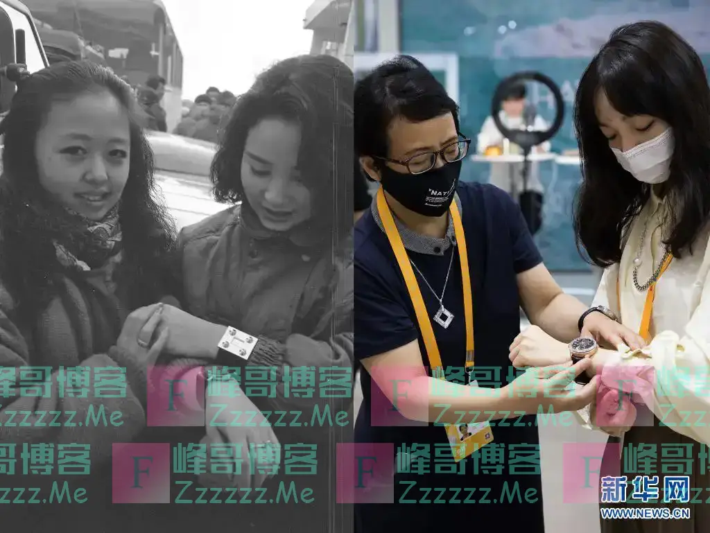 这是一张拼版照片:左图为1992年,各式色彩艳丽、造型别致的大手表倍受北京姑娘的青睐(新华社记者张燕辉摄);右图为2021年5月8日,观众在海南举行的首届中国国际消费品博览会时尚生活展区,试戴新发布的上海牌手表(新华社记者金立旺摄)。新华社发