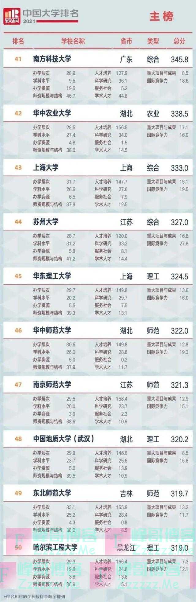 2021软科中国大学排名