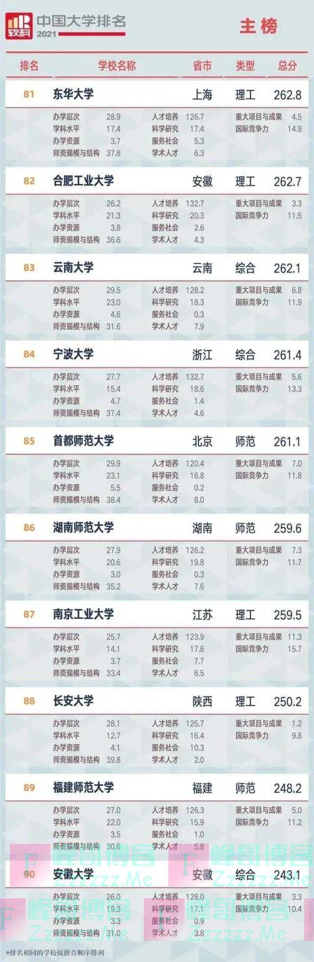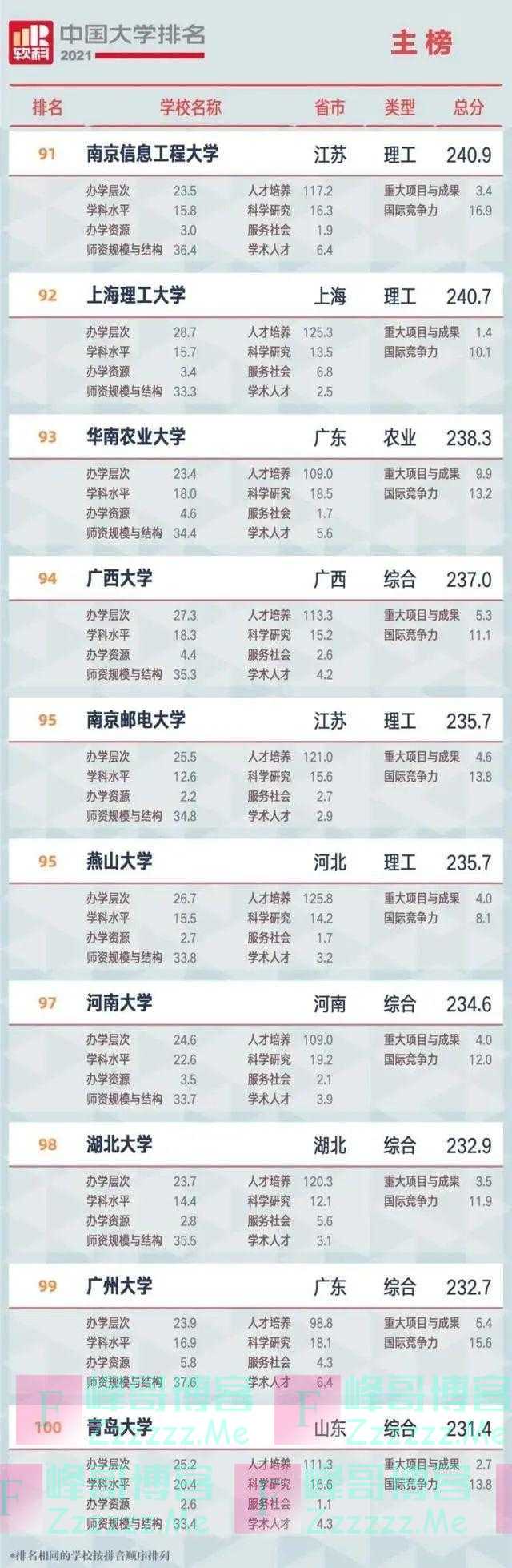 “双一流”高校在排名中占绝对优势地位,百强高校中有86所为“双一流”高校,其中广西大学排名较2020年上升7名,跻身全国百强,位列全国第94,至此“双一流”高校在百强榜单再增一席。