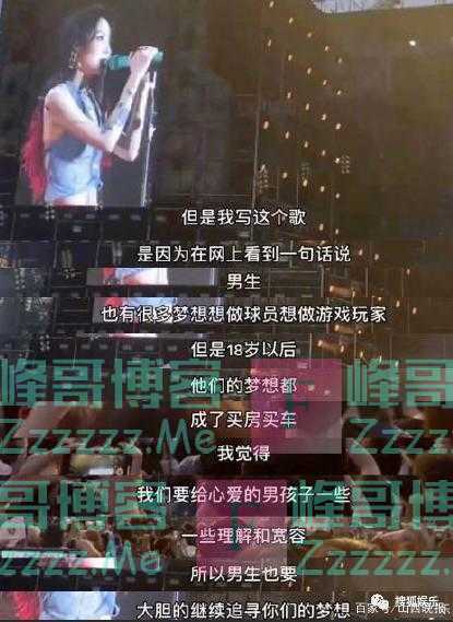 乃万一番言论引发的争议至今都还未平息,她在5月2日一场音乐节上说:“男生也有很多梦想,想做球员想做游戏玩家,但是18岁以后,他们的梦想都成了买车买房,我们要给心爱的男孩子一些理解和宽容。”