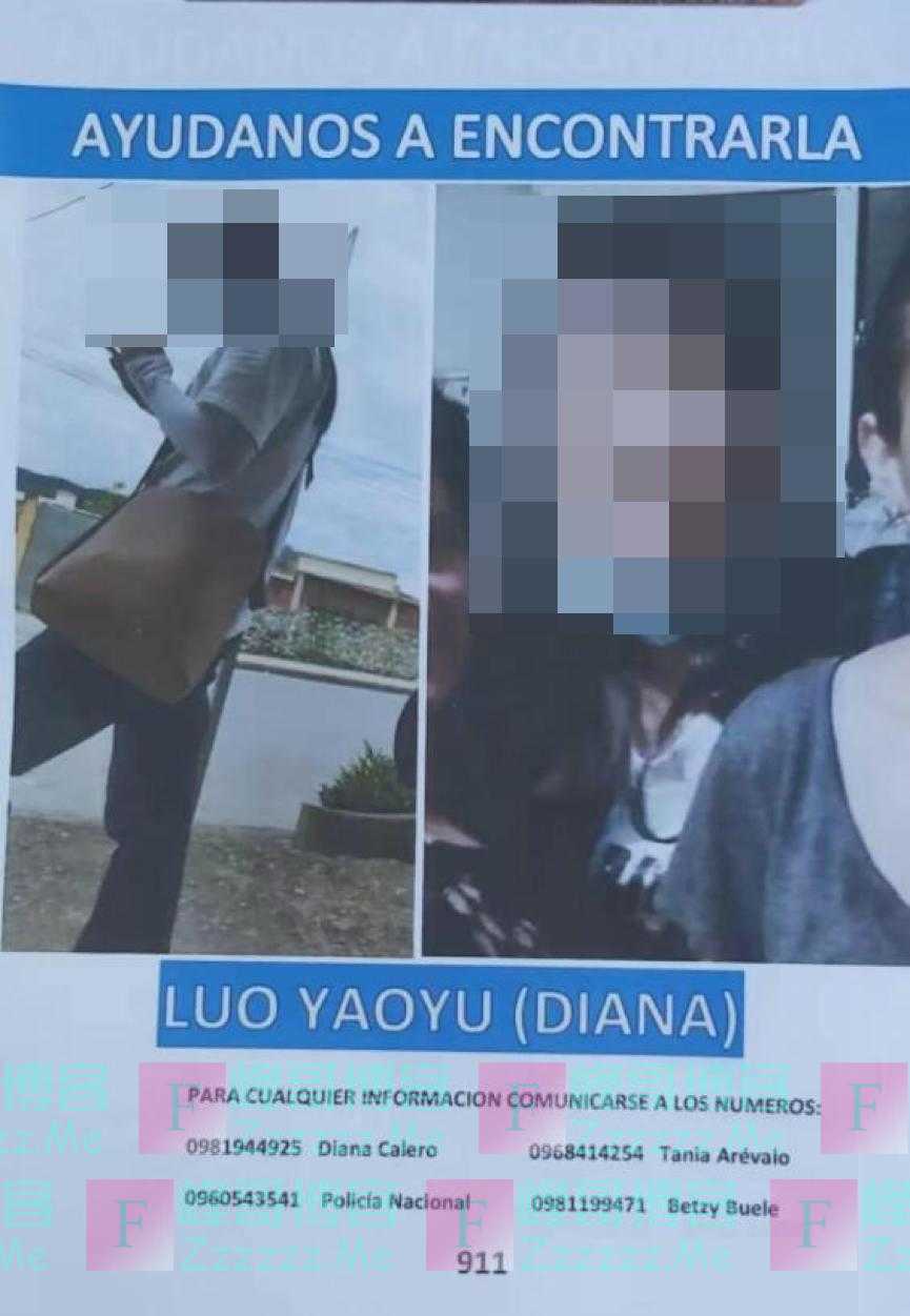 据厄瓜多尔《宇宙报》报道,失踪四天的中国籍女翻译Luo Yaoyu被发现死在灌木丛中,根据参与搜救的消防人员在媒体上表达的说法, 尸体没有被暴力侵犯的痕迹,死因需进一步确认。