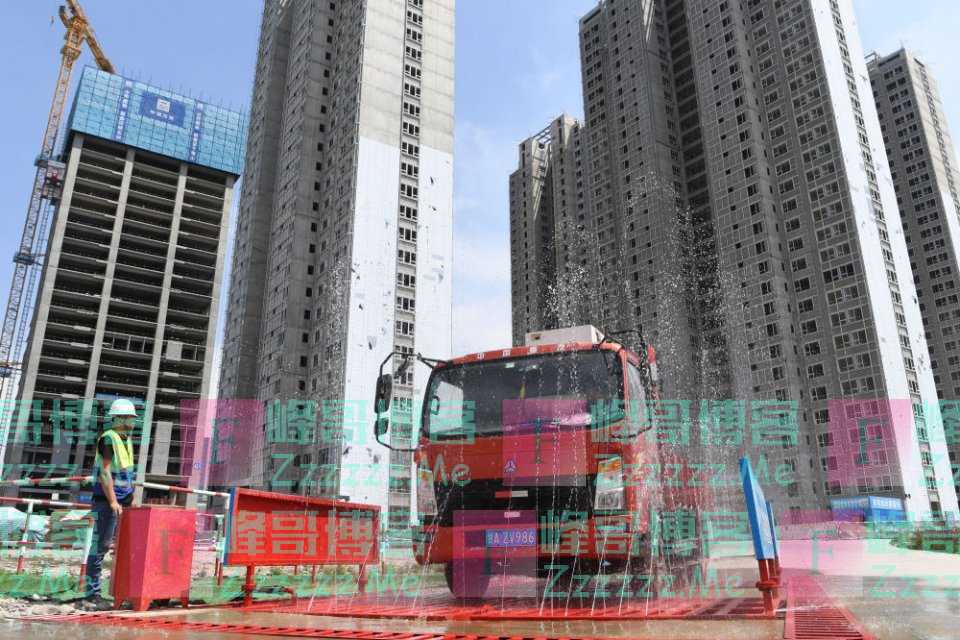 ↑ 在甘肃省兰州市中建三局一处建设工地上,感应式的洗车台利用循环再生水冲洗车辆,并对污水再次回收利用(5月12日摄)。