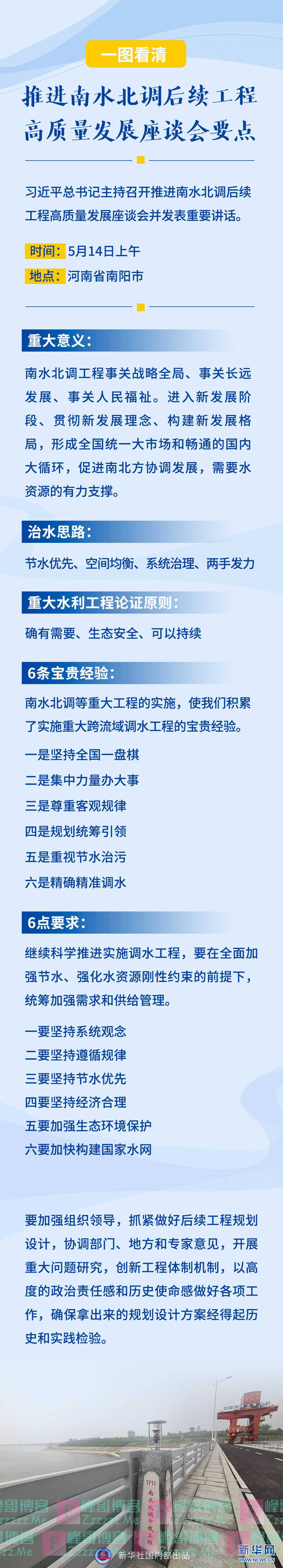 这次座谈会上,总书记对推进南水北调后续工程高质量发展提出了6点要求。