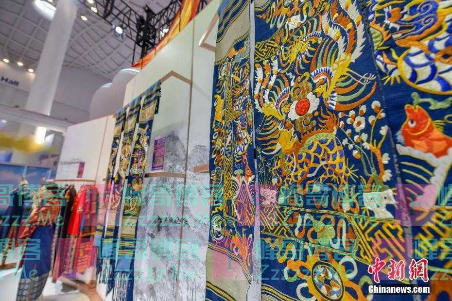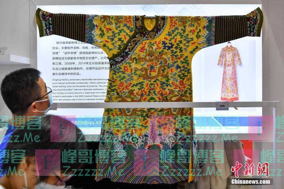 本文转自【中国新闻网】; 河北馆展出的京绣工艺制作的龙袍。 中新社记者 崔楠 摄