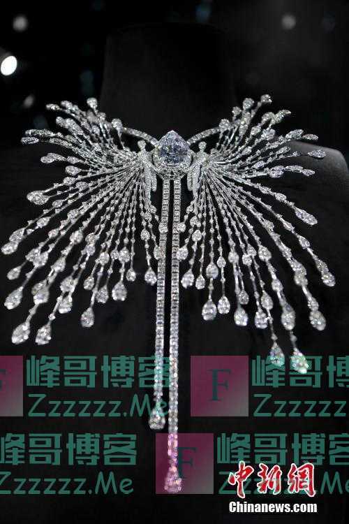 本文转自【中国新闻网】; 价值1.88亿元人民币的钻石项链“时光之眼”,展品总重584.54克,历时近半年打造,梨型主钻51.71克拉。这条项链的设计灵感来自中国传统文化中的“梁祝化蝶”的故事,中国传统文化在设计中得以彰显。中新社记者 骆云飞 摄
