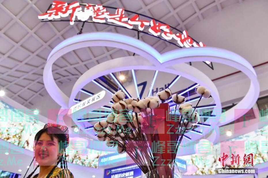 本文转自【中国新闻网】; 首届中国国际消费品博览会举行新疆日活动,推介新疆名优产品。图为新疆馆摆放着装饰用的棉花花束。 中新社记者 崔楠 摄