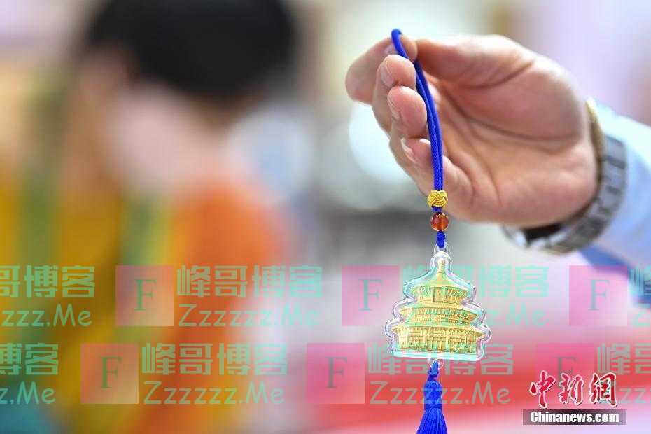 本文转自【中国新闻网】; 菜百首饰推出的天坛主题金饰亮相消博会。 中新社记者 崔楠 摄