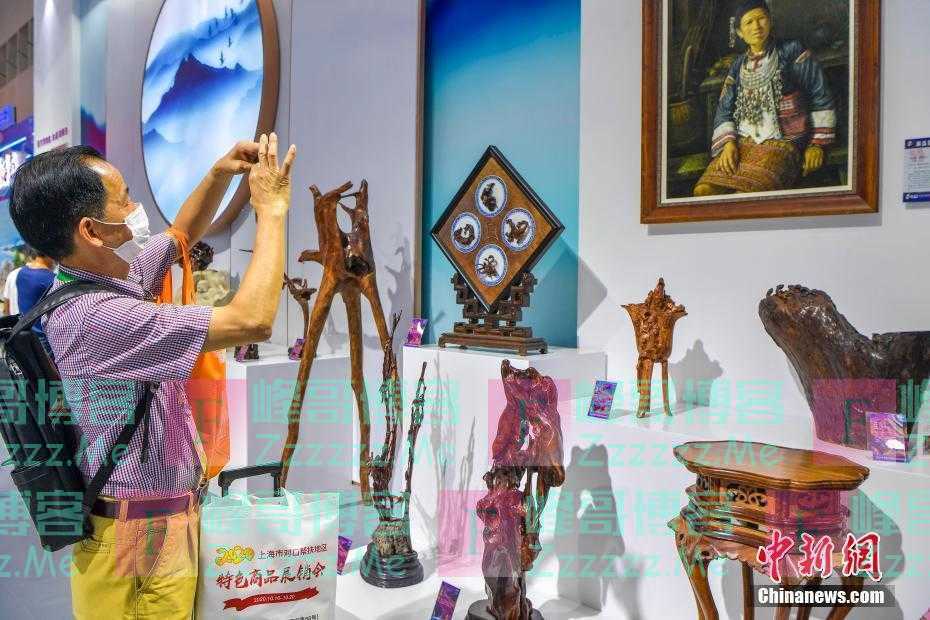 本文转自【中国新闻网】; 海南黄花梨工艺品亮相首届消博会海南馆。 中新社记者 骆云飞 摄