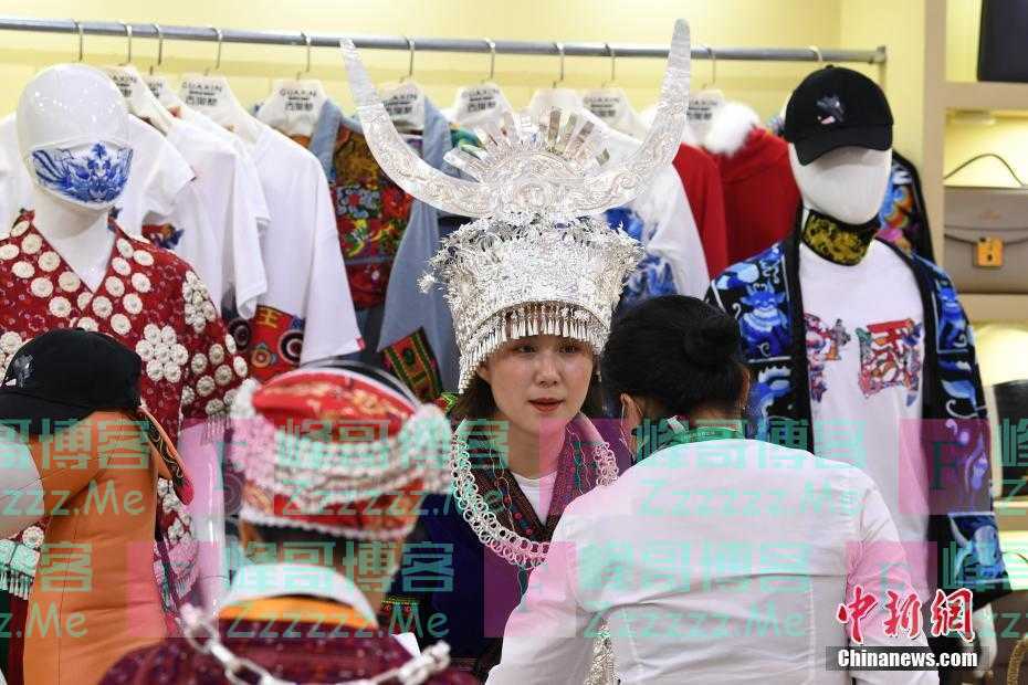 本文转自【中国新闻网】; 一名参展商身着苗族传统服饰向参观者推介产品。 中新社记者 崔楠 摄