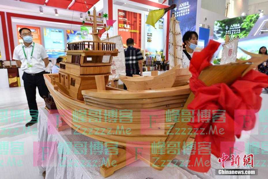 本文转自【中国新闻网】; 辽宁馆中展出的盘锦远航船厂制作的木制船模。 中新社记者 崔楠 摄
