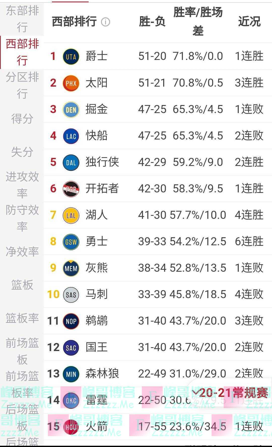 西部最终排名。至此NBA季后赛对阵形势和附加赛名单全部出炉:湖人和勇士相遇首轮西部附加赛;