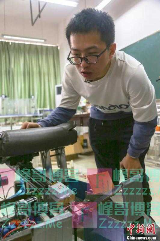 刘鑫在实验室里调试轮椅。