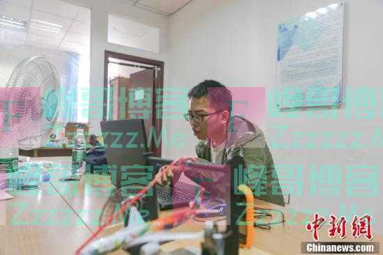 刘鑫在自己的工作室里操作电脑学习。